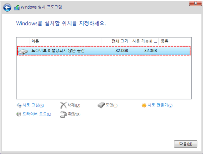 설치 드라이브 선택