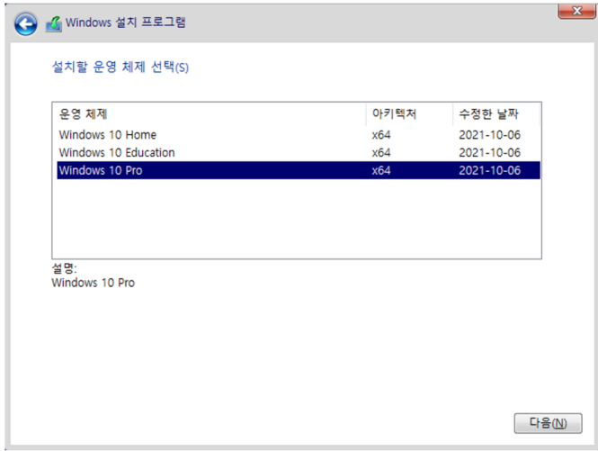 Windows 10 설치 운영 체제 선택