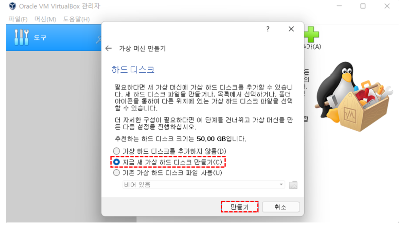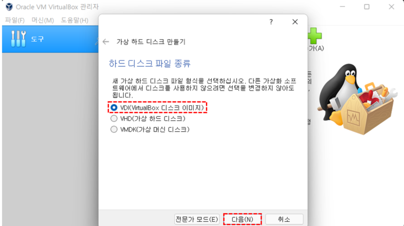 하드 디스크 동적 할당/고정 크기 선택