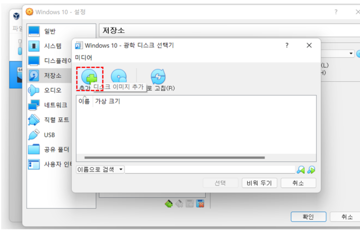 [저장소] - [비어있음] - [CD 아이콘] - [가상 광학 디스크 선택/만들기]