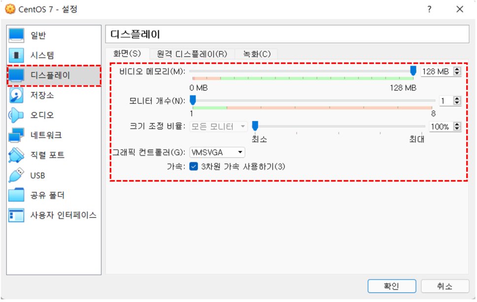 GUI 방식의 데스크탑 사용시 비디오 메모리 설정