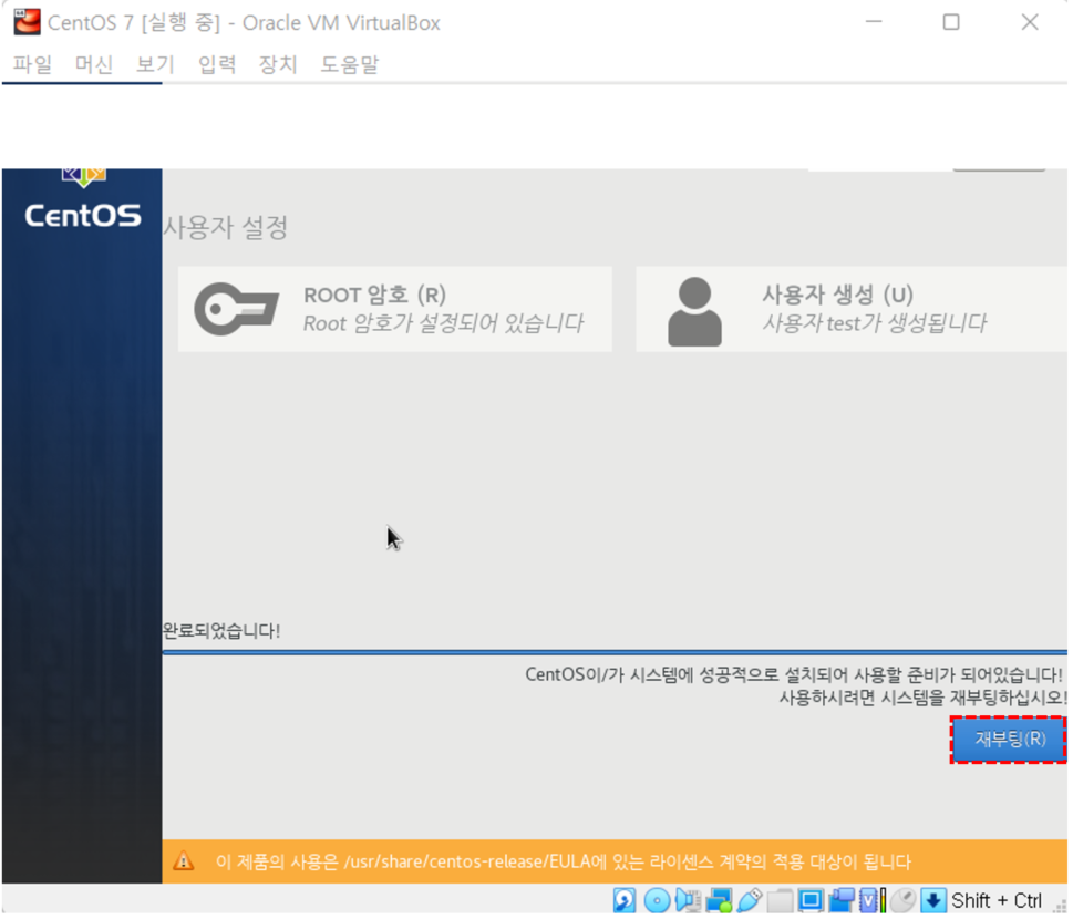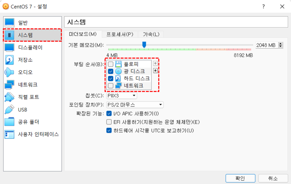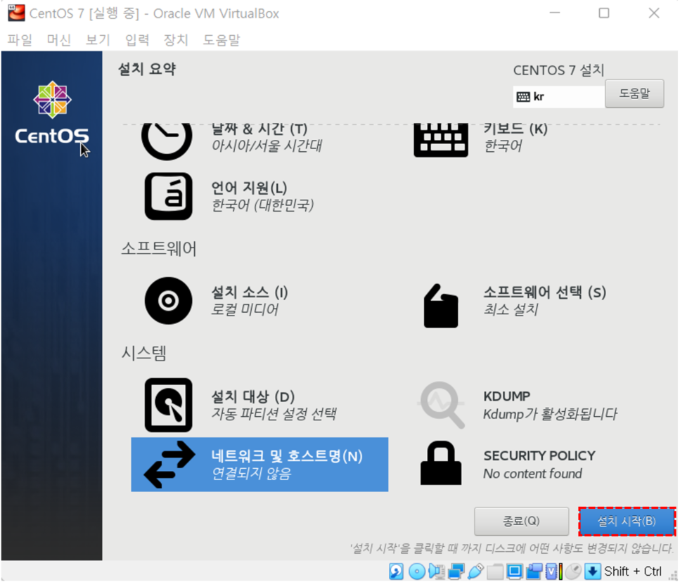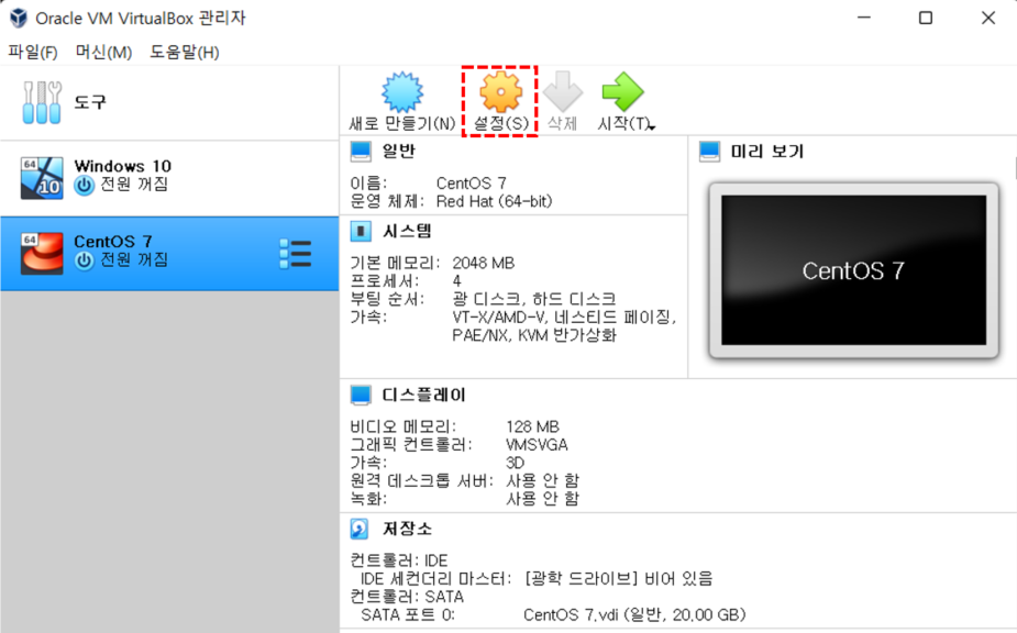 CentOS 7 가상 머신 종료 후 VirtualBox에서 CentOS 7 설정